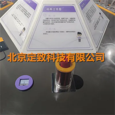 4)磁棒过线圈:主要由线圈、磁棒、检流计等构成。观众将磁棒插入线圈,观察检流计是否能检测到电流。