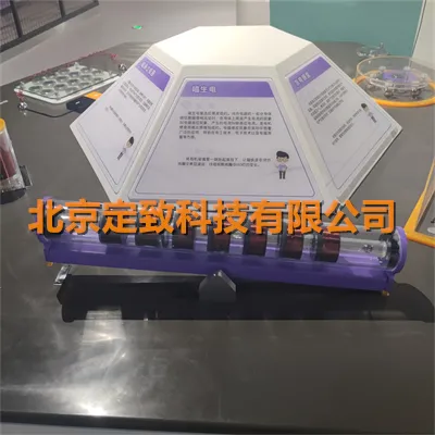 1)磁生电:主体由磁棒、磁铁和若干串联的带灯线圈组成,展示磁体穿过线圈产生感应电流带动灯珠发光。