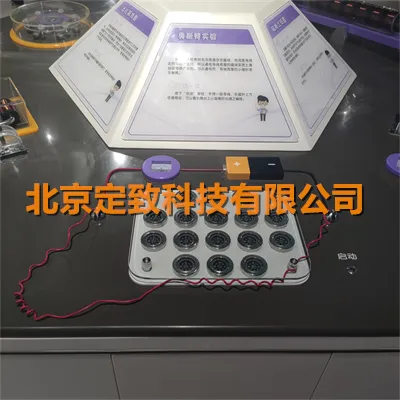 2)法拉第线圈:主要由线圈与检流计构成。观众按下电源按钮,接通电源,观察在电源接通的瞬间,检流计是否会出现偏转。