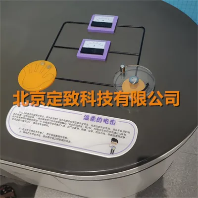 互动时,观众两个手指分别按在两个触点上,另一只手旋转手柄发电,观察电表示数变化,感受手指被电击感觉。