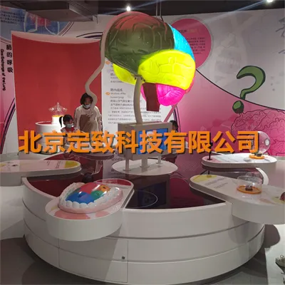 展项正中设置大脑模型,内部安装灯带,周围布置五个互动操作台,分别展示视觉、嗅觉、味觉、听觉、平衡控制等五种功能,让观众认识人的感官系统与大脑之间的关系。