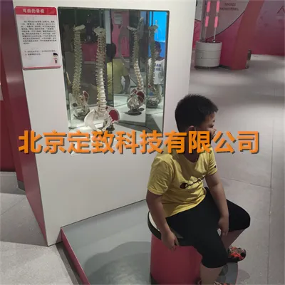 观众参与时,坐在平台上,移动身体,观察脊椎模型跟随自己移动的变化情况,了解脊椎的结构以及其在人体中的作用和重要性。