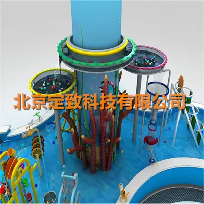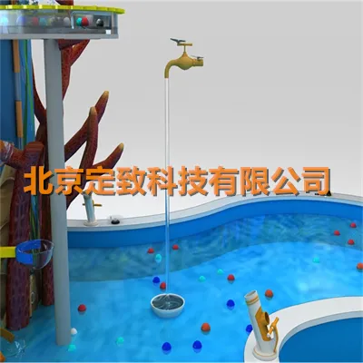 展品外形设计以一滴水滴下时溅起水花为设计灵感,设计融入蘑菇喷泉、伯努利球、水坝、船闸、八音琴水车、链子水车、飞轮水车、喊泉、观览水车、大水枪、压水机、自倾水桶、无源水、制造旋涡、水坝灌溉、水力发电、水雾蘑菇、压水反冲力转筒、叠水等组件,让观众沉浸在水的世界中了解机械机构。