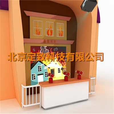 展品设置三个灭火枪、站台、大屏幕等,通过互动游戏的方式让观众学习灭火知识。