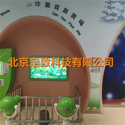 展项主要由计算机、液晶电视、板卡、音箱、互动机构、展墙等部分构成。电视画面营造场景,多个动物隐藏在场景中,设置两个豌豆形探照灯,可全方位摇动。观众使用探照灯在屏幕上寻找隐藏的动物头像上并点击确定按钮,画面弹出图框进行语音、文字介绍。